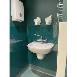 This innovative lead free Galvin CliniMix® point of use thermostatic progressive mixer provides state-of-the-art safety features to comply with the latest healthcare requirements. The single lever operates on/off temperature control for straight forward operation simplifying hand wash procedures and the long arm is operated handsfree with elbows to avoid hand contact or cross-contamination. Suitable for high and low pressure systems it can be set to deliver a thermostatically controlled water temperature up to 48ºC maximum.