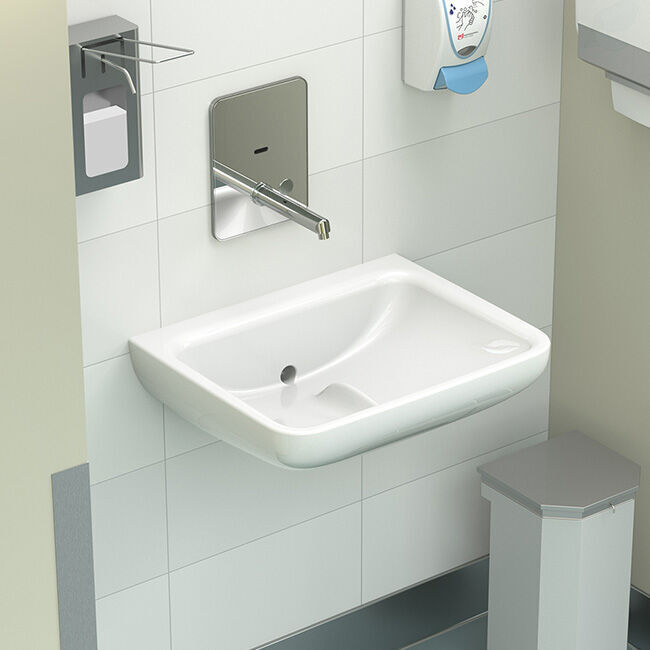 The Contour 21 Wall Basin is purpose built for hospital and commercial settings, combining durability with advanced hygiene features. It includes a concealed rear outlet and an antibacterial glaze enhanced with silver ion technology and hydrophilic properties to support long-term infection control.