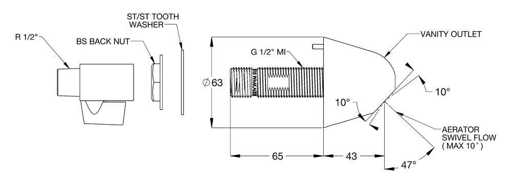 This GalvinCare® Basin Outlet is purpose built to enhance safety and durability in high-risk environments. Its smooth, angled conical design with an anti-rotation pin reduces the risk of vandalism, self-harm, and concealment of contraband. Featuring a flow-regulating swivel aerator for flexible water direction and a heavy-duty chrome finish, it combines security with long-lasting performance.