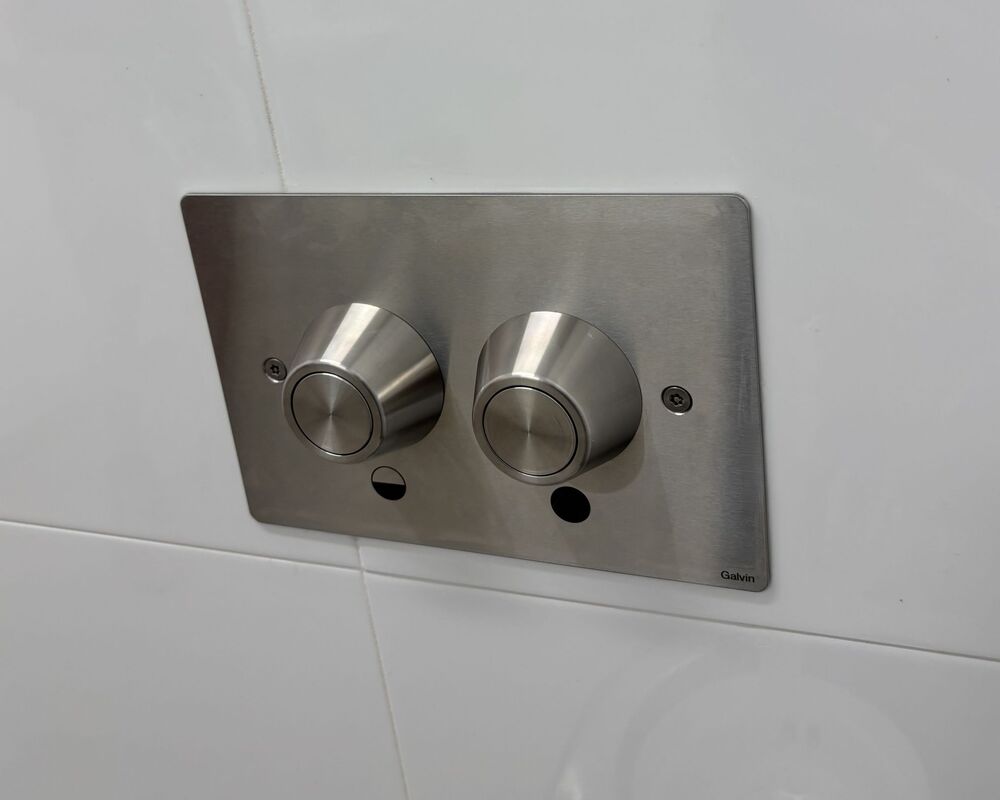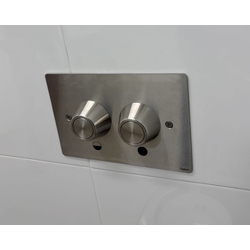 This face plate assembly is designed for the Slim Line Inwall Cistern and features pneumatic dual flush push buttons. With a ligature and vandal resistant design, smooth conical buttons for ease of use, and countersunk torx screws, it delivers both safety and reliability.