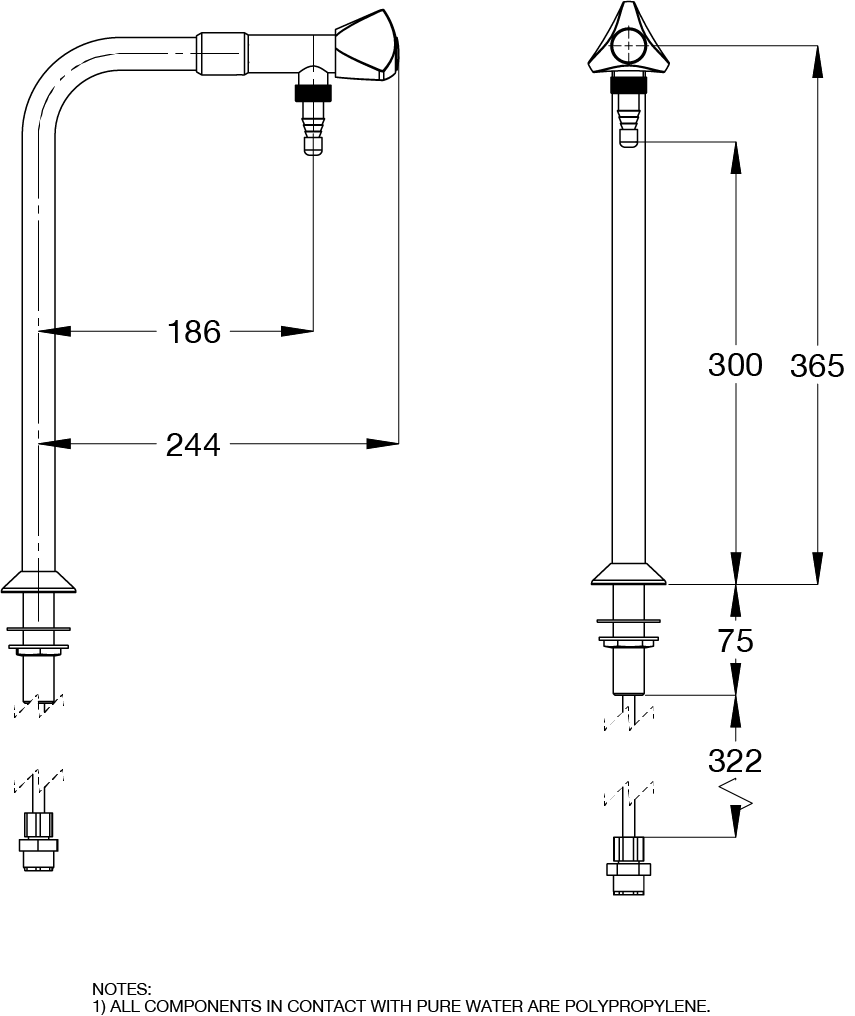 The GalvinLab® range of laboratory tapware is supplied standard with tube nozzle, Stirling DIN 13792 approved easy use handle and button, G 1/2" BSP inlet all finished in chrome plate.