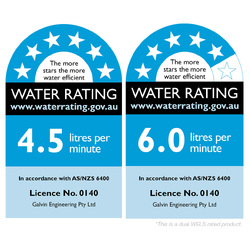 • WELS: 6 Star (4.5L/min) or 5 Star Rating (6.0L/min)