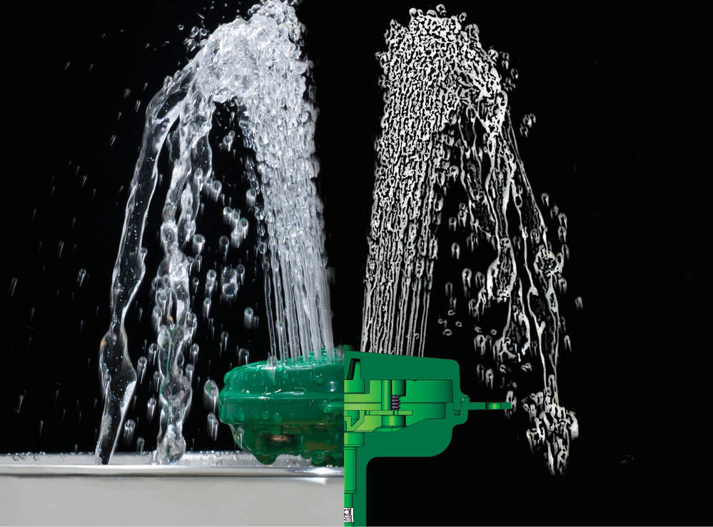 AXION® MSR eye/face wash head uses an inverted directional laminar flow to sweep contaminants away from the vulnerable nasal cavity.
