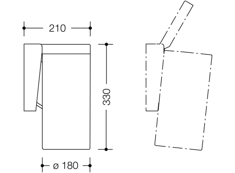 • 330 mm high and 210 mm deep, ø 180 mm