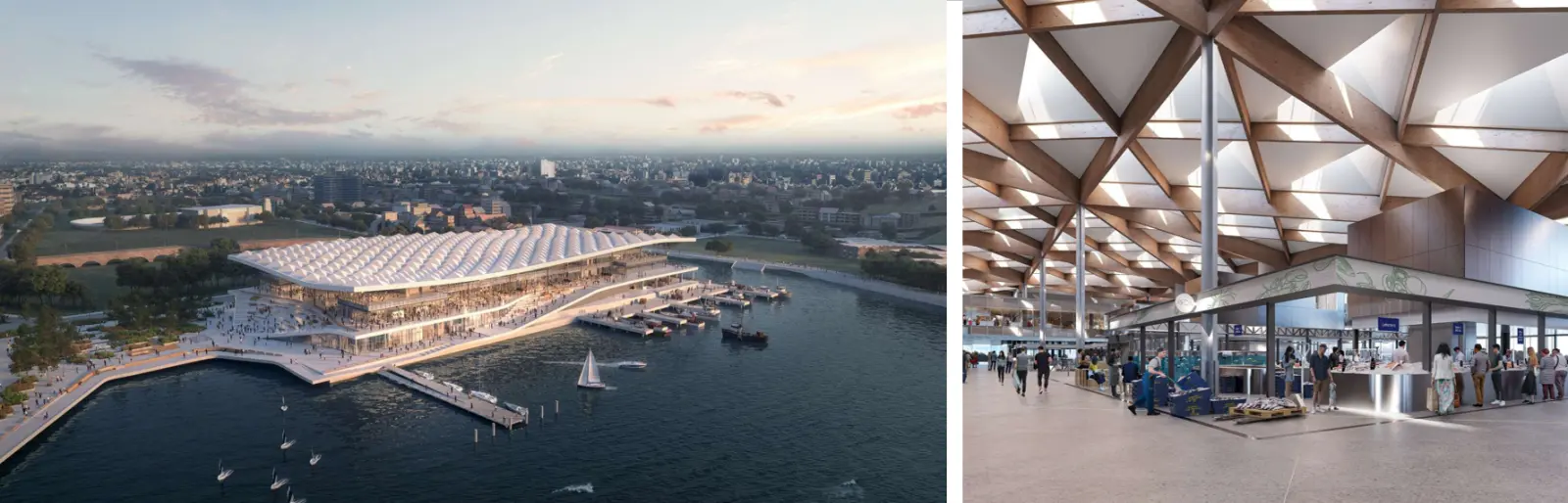 As part of a major urban renewal initiative, the Sydney Fish Market at Blackwattle Bay is undergoing a transformative redevelopment that will redefine the waterfront precinct. Designed by renowned architects 3XN/GXN, in collaboration with BVN and Aspect Studios, the new market will feature an iconic wave-shaped roof, expanded retail spaces, and improved public access. This world-class facility will not only reinforce Sydney’s status as Australia’s premier seafood destination but also set new benchmarks for sustainability and innovation.