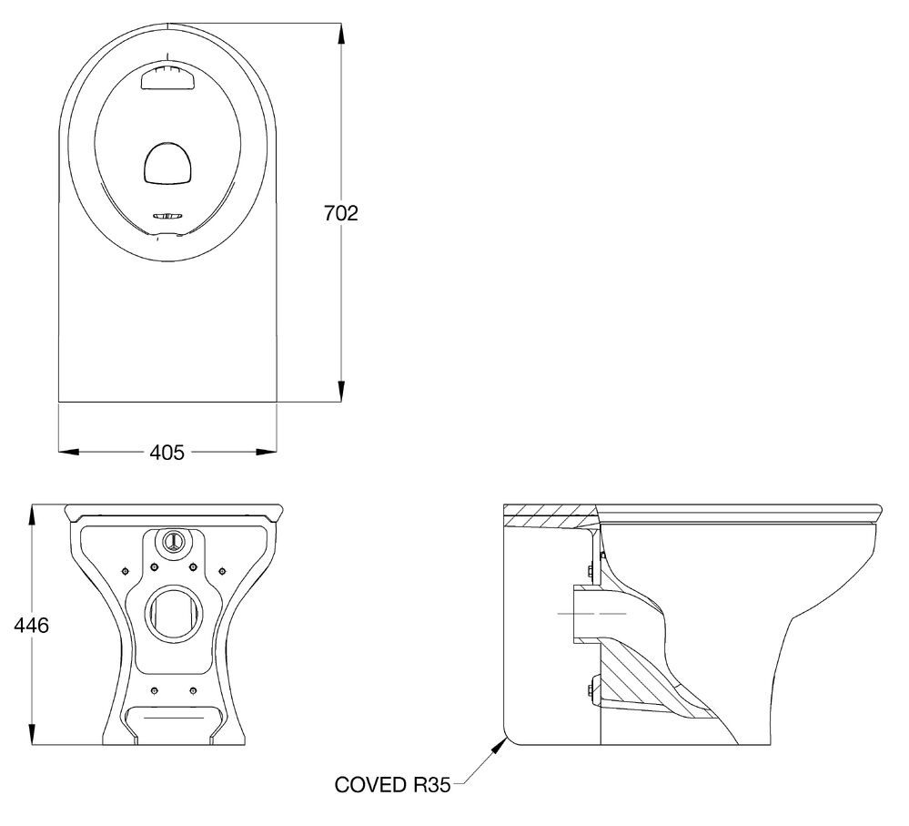• 123.41.31.40 Wallgate Ligature Resistant S/Surface Pan Coved with Integ White Seat 446x702mm