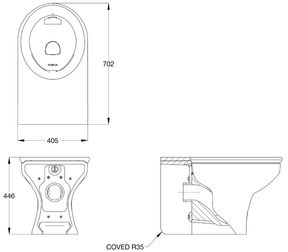 • 123.41.31.40 Wallgate Ligature Resistant S/Surface Pan Coved with Integ White Seat 446x702mm