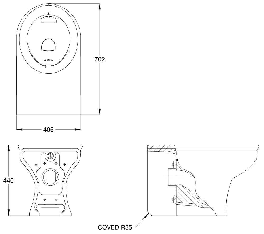 • 123.41.31.40 Wallgate Ligature Resistant S/Surface Pan Coved with Integ White Seat 446x702mm