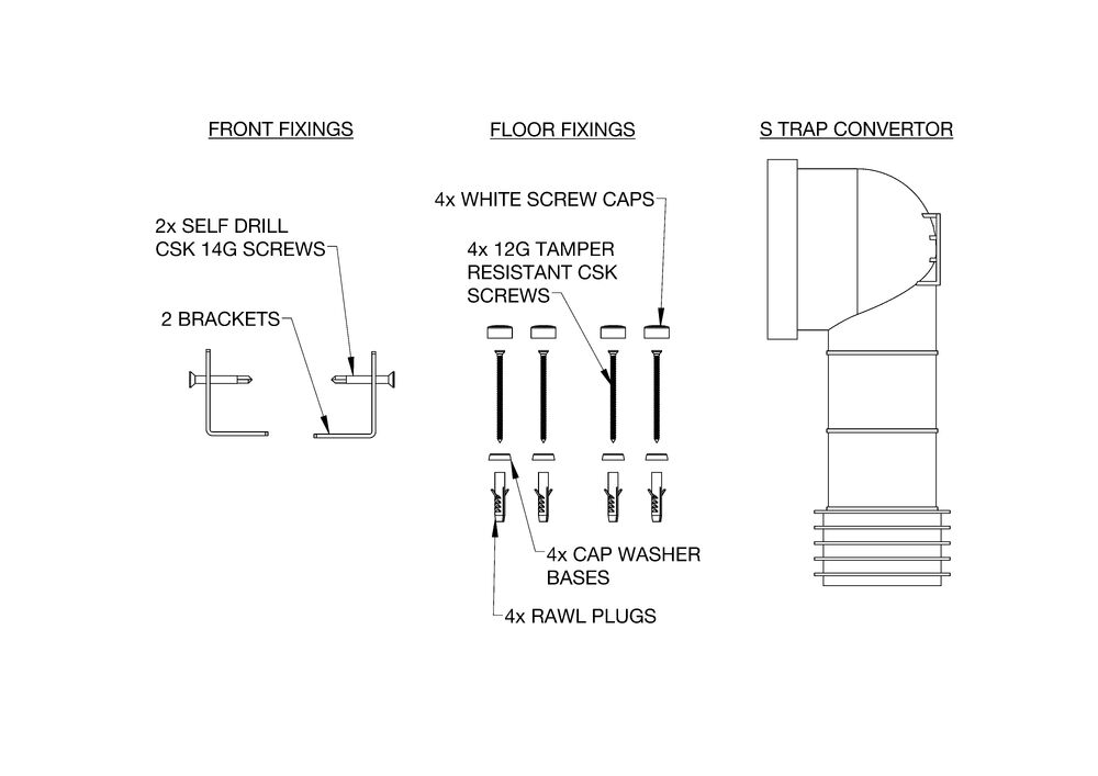 The Wallgate Pan Front Fixing Kit is suitable for situations where rear fixing is not possible in Wallgate WC Pan installations. This kit enables a secure installation of any Wallgate pan by fixing it to the front of a wall. The kit includes tamper-resistant fixings, offering high levels of security and durability against potential damage.