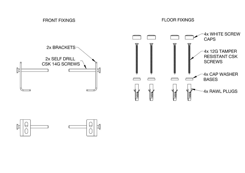 The Wallgate Pan Rear Fixing Kit enables a secure installation of any Wallgate pan by fixing it through the rear wall, enhancing the overall robustness. The kit includes tamper-resistant fixings, offering high levels of security and durability against potential damage.